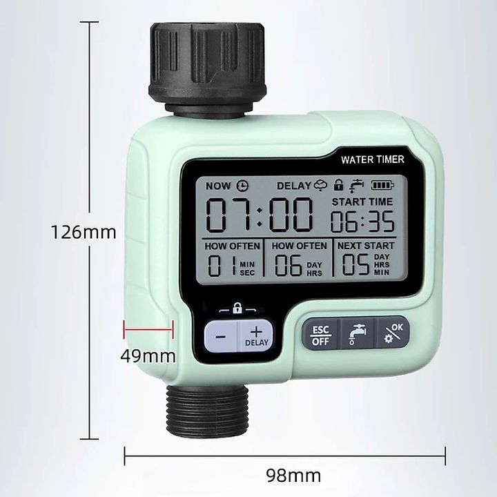 - Trì hoãn thời gian: Hẹn giờ tưới nước có thể lập trình giúp bạn trì hoãn việc tưới nước vào một thời điểm đã định, vì vậy bãi cỏ và khu vườn của bạn luôn ở trong tình trạng tốt nhất.