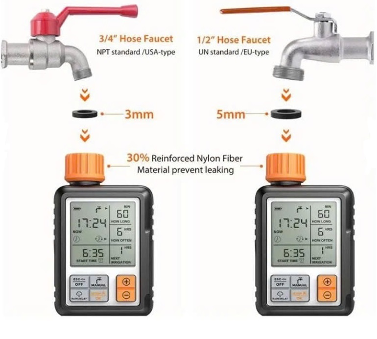- Chế độ tự động hoặc thủ công: Các bộ hẹn giờ có thể hoạt động tự động theo lịch trình đã cài đặt hoặc có chế độ thủ công nếu bạn muốn tưới nước ngay lập tức
